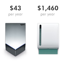 The Dyson Airblade™ V hand dryer costs up to 69% less to run per year than other hand dryers, and up to 97% less than paper towels.