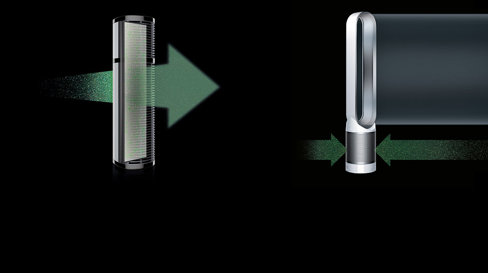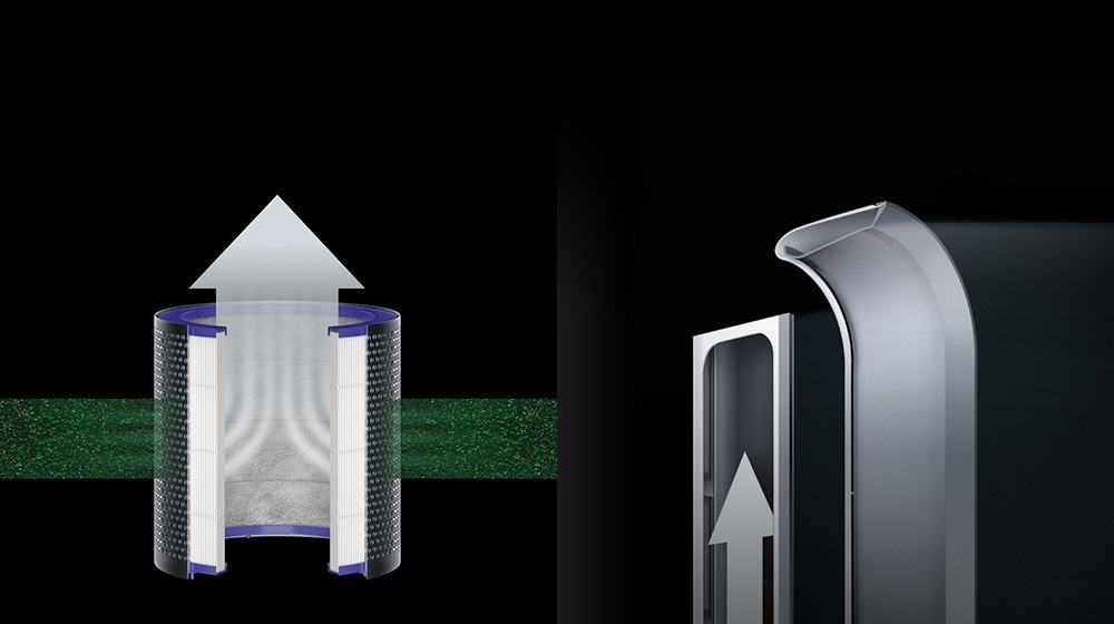 Using an independent motor for smooth oscillation, Dyson purifiers project and circulate purified air across the room.