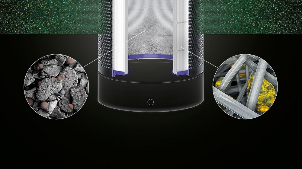 1.1 square metres of constructed borosilicate microfibres, pleated over 200 times. Captures 99.95% of fine particles such as allergens and pollutants.†