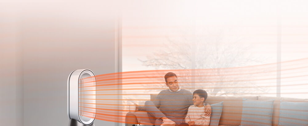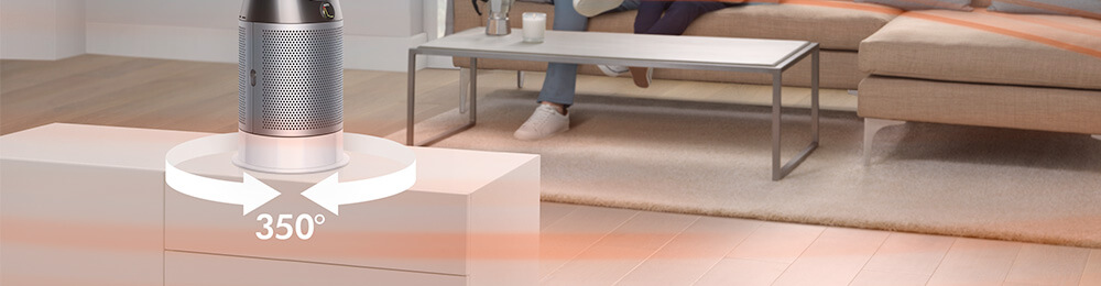 The machine projects over 290 litres of smooth, purified air per second. With 350˚ oscillation, it mixes and circulates the air to heat or cool you2 – anywhere in the room.3