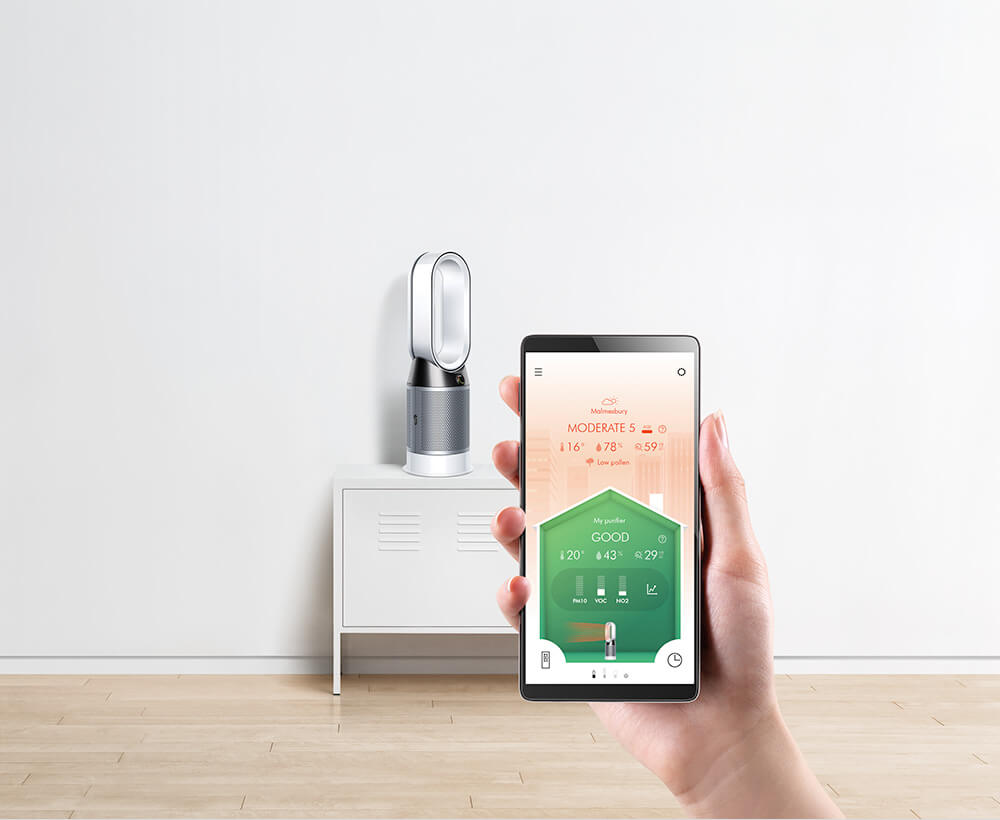 The Dyson Link app lets you control your machine – at home, or remotely. It gives you real-time reports on indoor and outdoor air quality, as well as temperature, humidity and filter life. 5