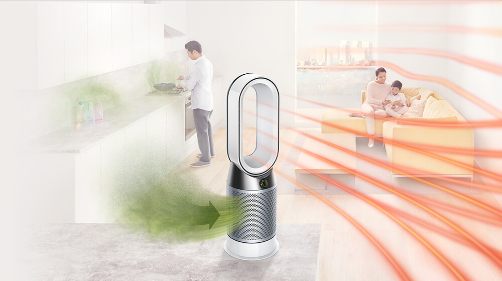 With three intelligent sensors, the Dyson purifier fan heater automatically detects airborne particles and gases.1