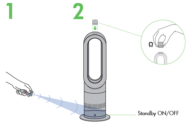 - To operate, point the remote control toward the front of the base and press the standby ON/OFF button.