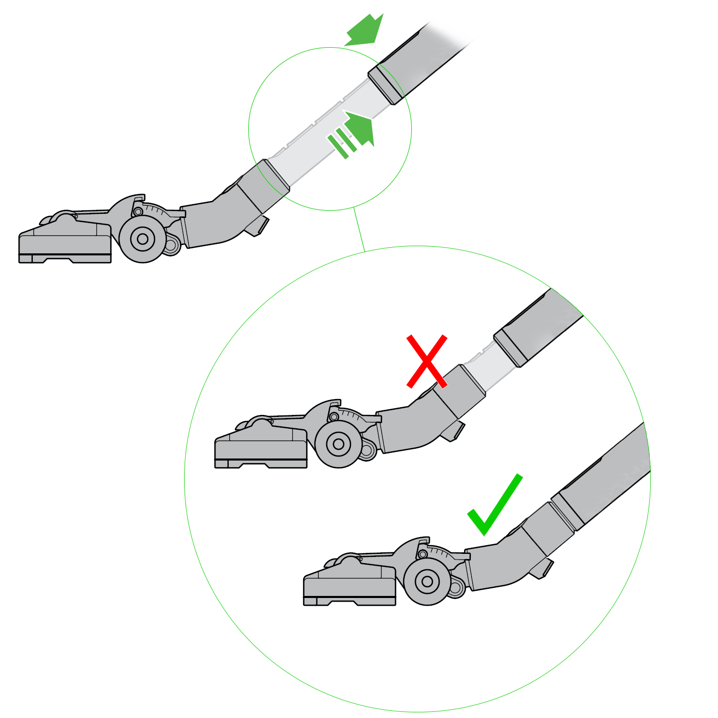 • Press the red button and collapse the extension tube fully as shown below.