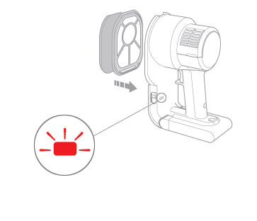 A flashing red light when the on / off button is pressed indicates that the pre-filter is not fitted correctly.