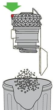NB: To minimise dust/allergen contact when emptying, encase the clear bin tightly in a plastic bag and empty. Remove the clear bin carefully. Seal the bag tightly, dispose as normal.