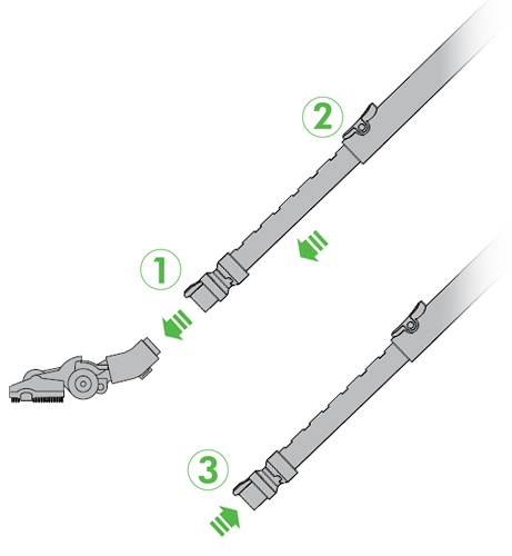 2. Press the release catch on the extension tube to extend fully, ensuring it 'clicks' into place.