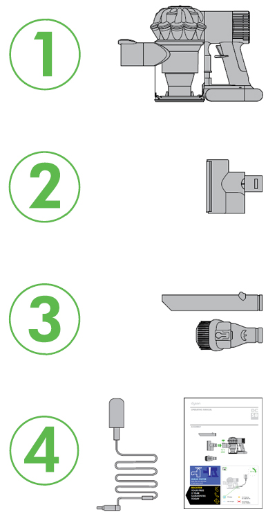 - Crevice tool and combination tool.