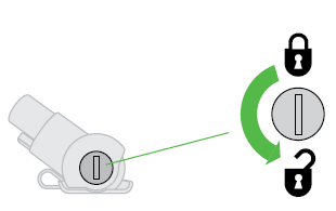 • Use a coin to unlock the fastener marked with a padlock.