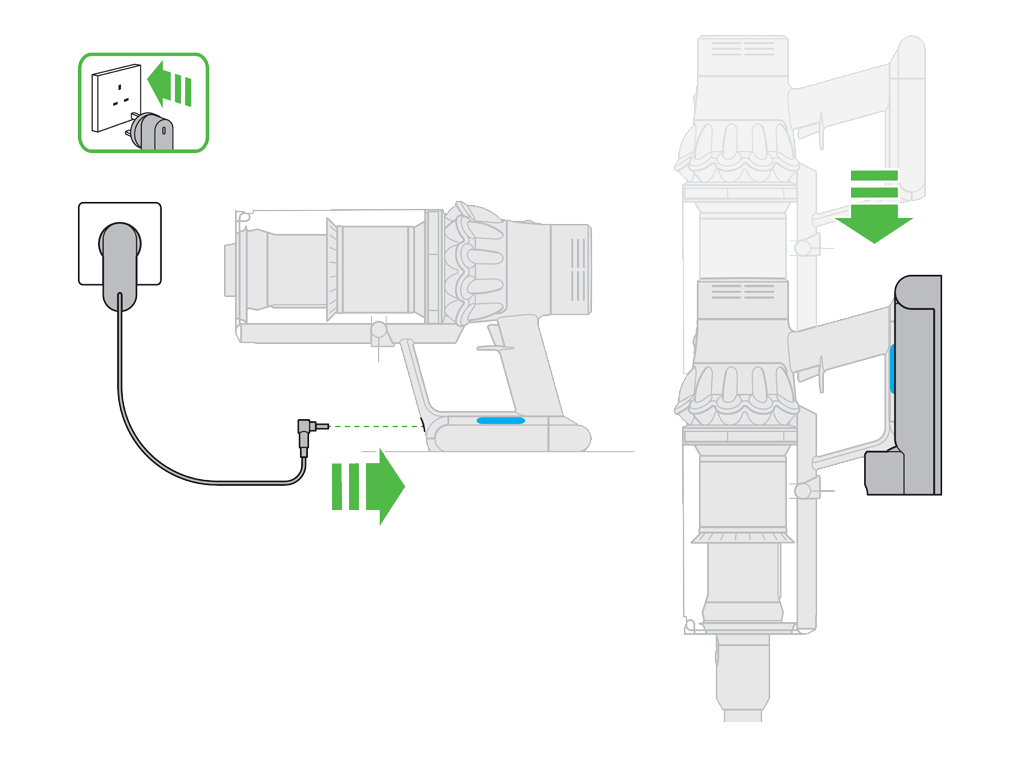 - The light on the charger will show when the machine is being charged and will go out when charging is complete.