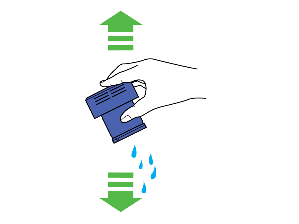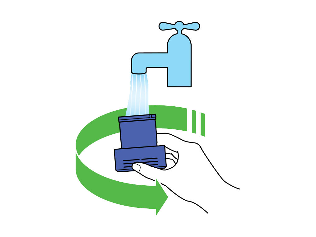 • Gently tap the filter unit to remove any excess water and leave to dry with the open end facing up.