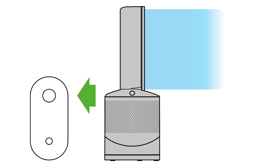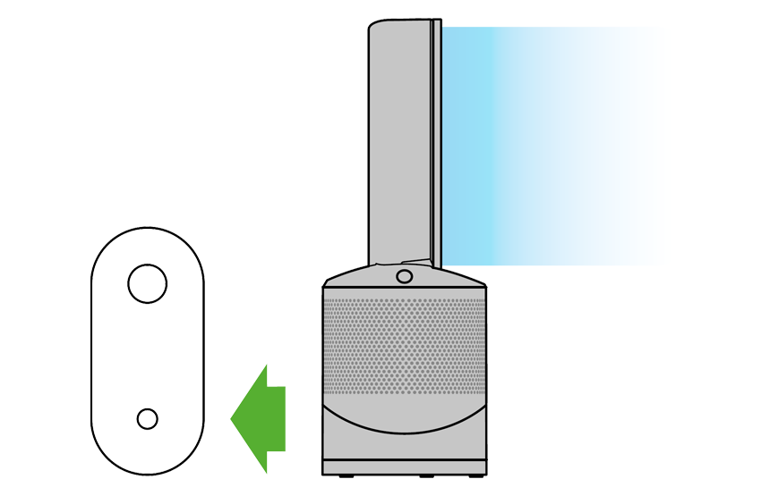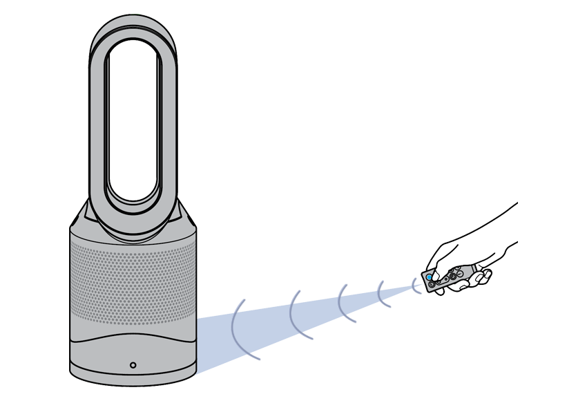 Attach the remote control to the top of the Dyson purifier with the buttons facing down.