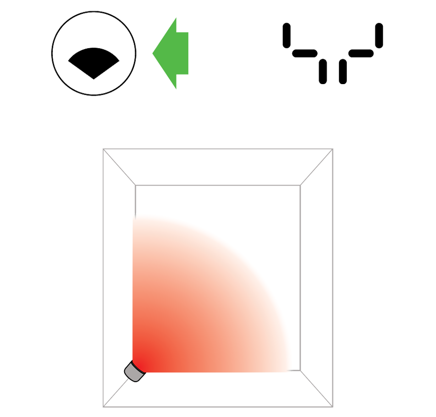 Press the wide angle button to change from a personal directed airflow to a whole room airflow.