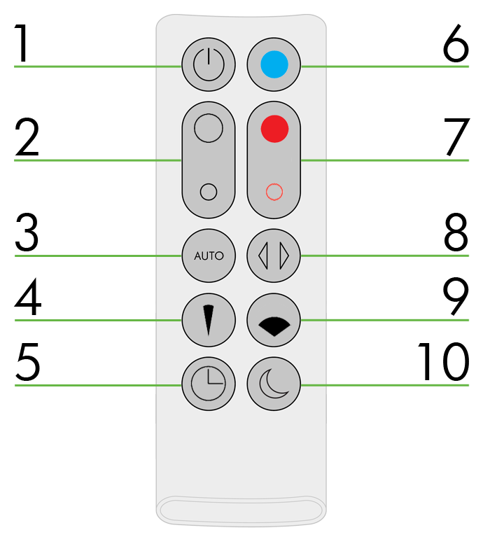 Press the narrow angle button to change from a whole room airflow to a personal directed airflow.