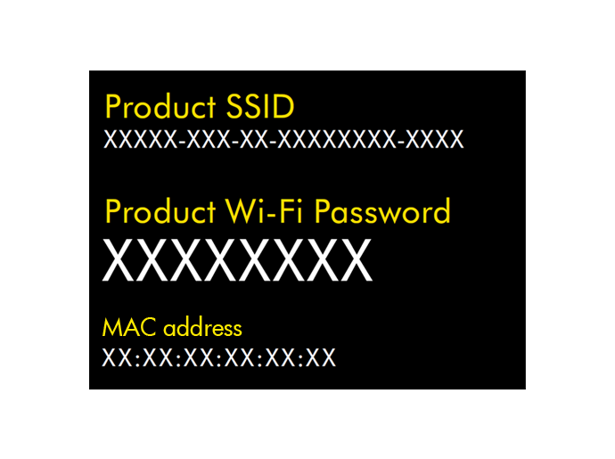 The product Wi-Fi information (required for connection) is located on a sticker.