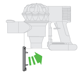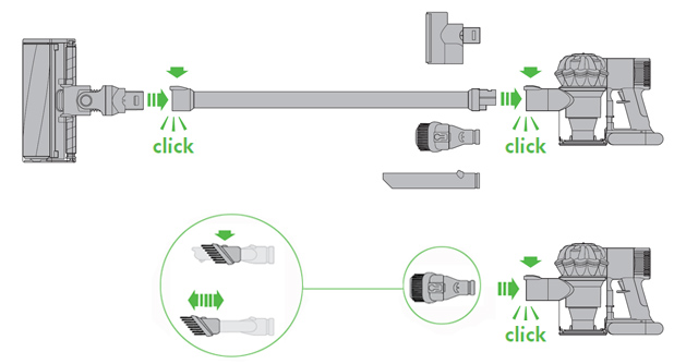 - Slide the accessories into the inlet pipe on the bin assembly until they 'click' into position.