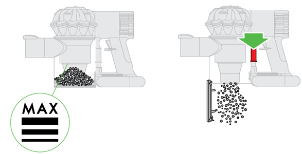 - Empty as soon as the dirt reaches the level of the MAX mark – do not overfill.