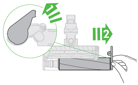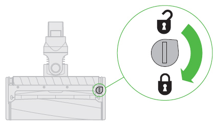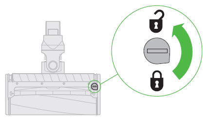 - Close the fastener by turning a quarter turn clockwise. Ensure that the fastener is fully turned and the base plate and the brushbar is secure.