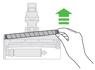 - Lift out the small brushbar from the octagonal end and pull away from the
