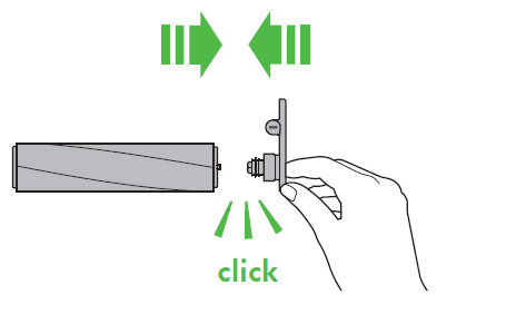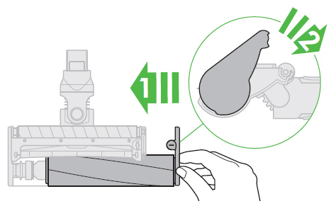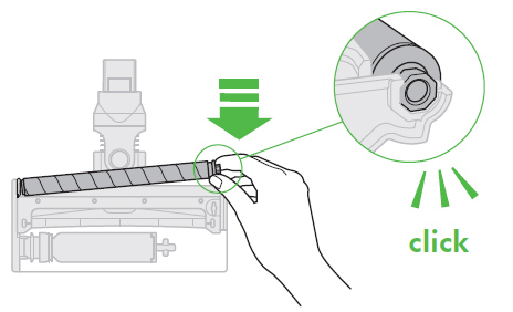- Refit the small brushbar before the large one. Insert the round end of the small brushbar into place. Push down the octagonal end until it clicks into place.
