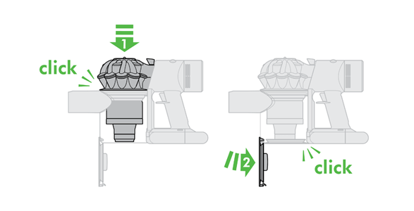 - To close, push the cyclone downwards until it is in the normal position and manually close the base of the bin - the base will click when it is securely in place.