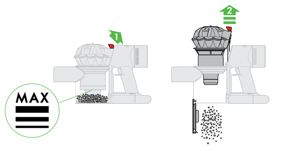 - Empty as soon as the dirt reaches the level of the MAX mark – do not overfill.